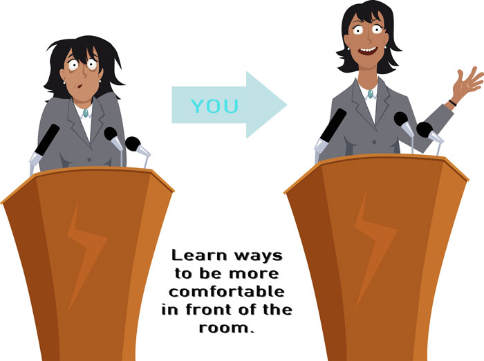 Have you ever been asked to speak at a meeting and felt anxiety, even dread? Getting in front of the room gets better with tools and practice–you may even start to enjoy it.